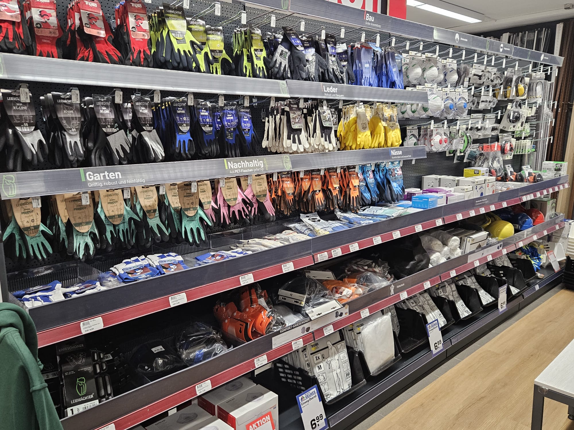 In unserem Baumarkt finden Sie ein vielfältiges Sortiment – angefangen von festem Schuhwerk über multifunktionale Hosen bis hin zu lebenswichtigen Schutzhelmen. Mit uns sind Sie jederzeit bestens gerüstet und ausgestattet.